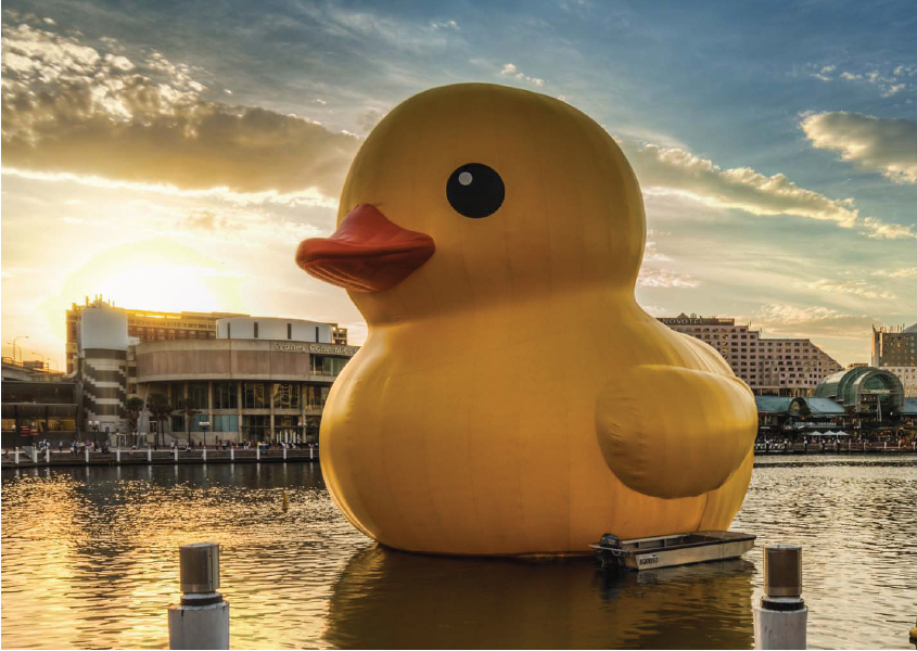 荷兰艺术家霍夫曼设计的黄色小鸭中秋节到高雄。(图片来自网络)