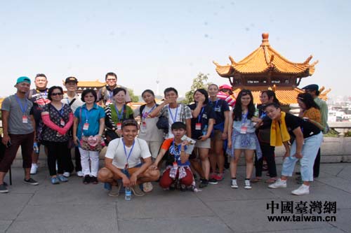 台湾少数民族参访团在黄鹤楼合影。(中国台湾网 雍紫薇 摄)