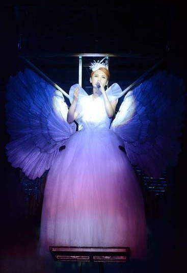 她昨穿白色洋装,搭配5米宽的巨型机械羽翼,化身彩色蝴蝶,抱病献唱6首歌曲,在台上直呼:“今天大肆咳痰流鼻涕,但我要继续唱,因为我很勇敢!”立刻引起现场1500名粉丝尖叫打气。(中国台湾网 高旭)