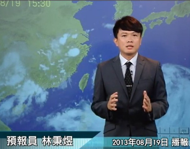 台湾“气象局”预报员林秉煜解说卫星云图。(图片来自台媒)