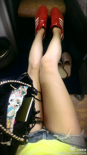 曲家瑞常在微博晒美腿。(图片来自台媒)