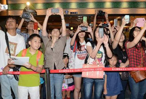 NBA火箭队球星林书豪21日在松山机场搭机前往上海,许多粉丝特别到机场送别。(来源:台湾《中国时报》)