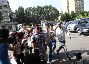 中国台湾网8月23日消息 据台湾媒体报道,“洪仲丘死亡案”桃园地方法院第一次开庭审理何江忠、徐信正、范佐宪三人交保发回更裁。3人上午9时10分左右陆续到达桃园地方法院,范佐宪依然在太太与友人陪同下,戴着帽子低着头不发一语走进法院大门。何江忠则是穿着便服牵着太太的手,挺着胸膛昂首进入,对媒体的询问,是抿着嘴没回答。徐信正从地检署通道走入法院,有意避开守候的媒体。桃园地方法院合议庭在9时20分开庭审理三人更裁案。(中国台湾网 高旭)