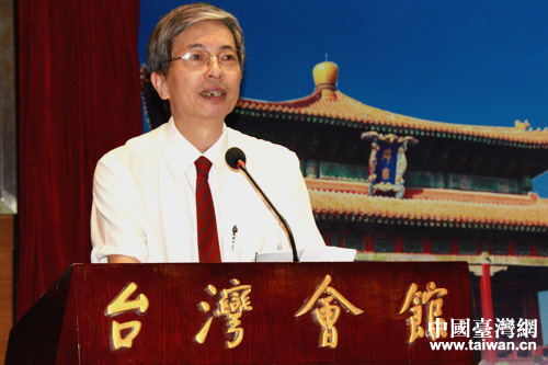 全国人大常委、台盟中央副主席、全国台联会长汪毅夫在开营仪式后,为与会营员作专题演讲。(中国台湾网 高斯斯 摄)