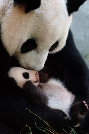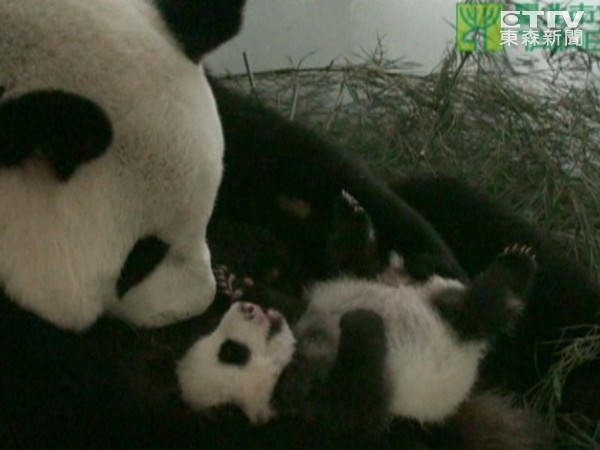 圆仔与妈妈面对面躺着,这样圆圆可以随时抱起圆仔,圆仔饿了,也可以马上找到喝奶的方向,这是牠们母子之间,最有默契的相处姿势。工作人员说,“圆圆照顾圆仔是无微不至,今天早上我们秤重的纪录是显示圆仔增重到3162.6克。”