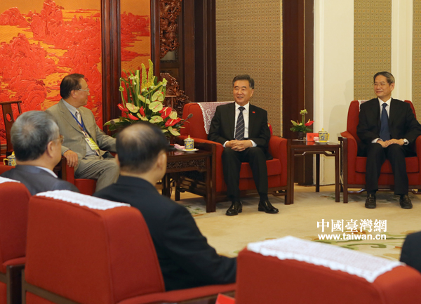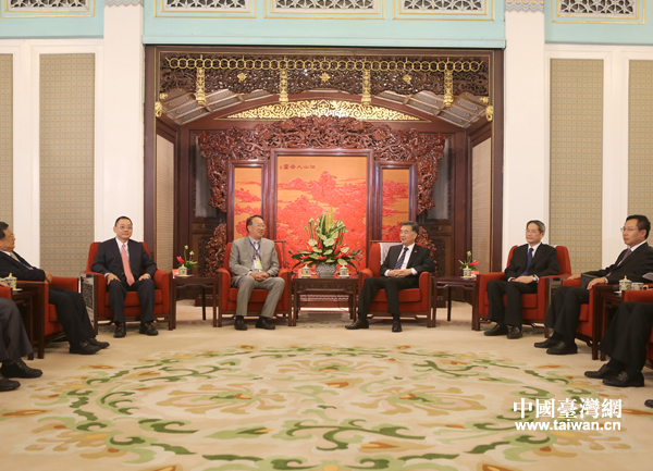 中国台湾网9月2日北京消息 今天下午,中共中央政治局委员、国务院副总理汪洋在中南海紫光阁会见了由台湾区电机电子工业同业公会理事长郭台强率领的台湾电电公会参访团一行。 (中国台湾网 田云鹏 摄)