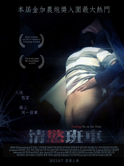 网友将春宫照片制成标榜“本届金加农炮奖最佳入围”,片名叫《情欲班车》的艺术电影海报。(图片来自台媒)
