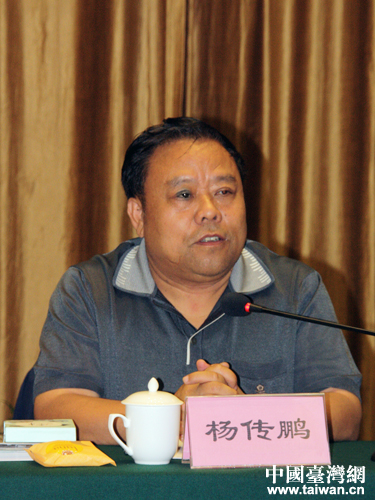 新疆生产建设兵团台办巡视员杨传鹏主持座谈会并致辞。(中国台湾网 王伟 摄)