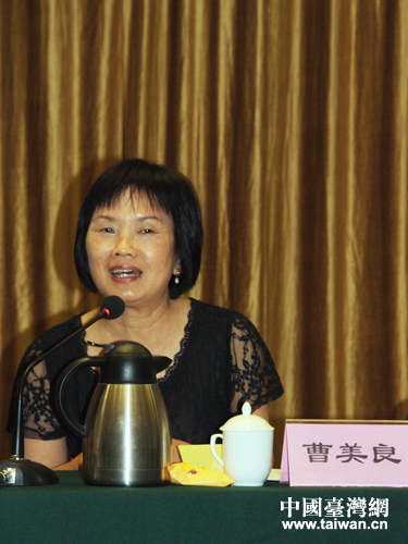 台中市参访团团长、台中市政府秘书长曹美良在座谈会上讲话。(中国台湾网 王伟 摄)