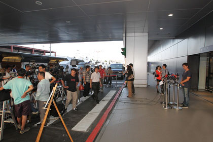 中国台湾网9月10日消息 台湾“立法院长”王金平被指涉入“关说案”,预计将于10日晚7时20分随华航CI-722班机抵达桃园机场。据台湾媒体报道,10日下午各大媒体皆派出大批记者及SNG车至桃机第1航厦外等候。