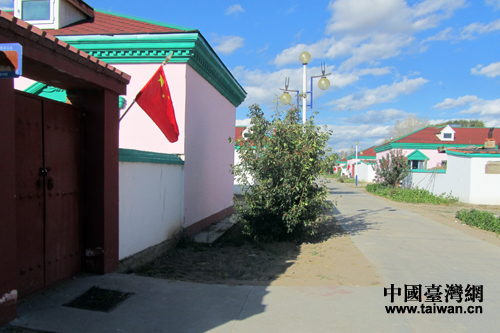 一连每家每户门前都悬挂国旗。(中国台湾网 王伟 摄)