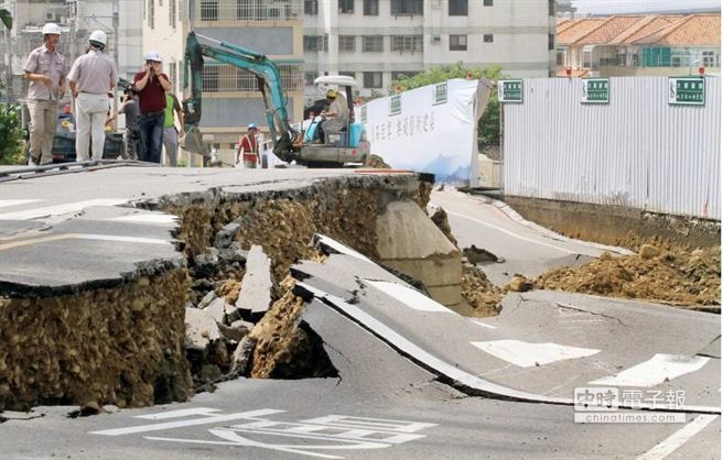 中国台湾网9月12日消息 据台湾《中国时报》报道,台中市北屯区和顺路及正道街路口12日清晨发生马路坍塌,一条约50米的马路突然塌陷两米深,像是经历大地震一般,让人看了怵目惊心。