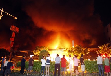中国台湾网9月15日消息 据台湾“中央社”报道,台湾台中市雾峰区林森路上一整排的铁皮屋厂房,在14日深夜10点左右冒出熊熊黑烟,连栋的厂房内有家具行、汽车修配厂及胶带工厂,都有大量的易燃物品火势一发不可收拾。围观民众指责消防队救灾不力,跟前来帮忙抢救火场的义消发生肢体冲突。更有民众向消防队丢掷啤酒瓶,现场气氛紧张,在冲突中有多人受伤就医。由于火场范围很大,一直到15日凌晨消防队还在抢救中。(中国台湾网 高旭)