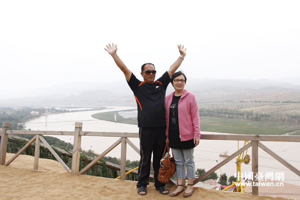 登上沙山顶端,远眺一望无垠、延绵起伏的大沙漠,团员们惊叹不已。一位团员说,很多台湾人也有大漠情节,非常渴望去看看与台湾不一样的地理风貌,能够来到沙坡头,亲手摸一摸黄沙,看看延绵不绝的大漠景象,感觉非常幸运,