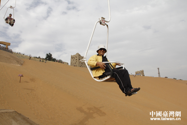 20日,参加2013年台湾少数民族塞上行暨两岸医疗健康产业研讨会活动交流团一行来到宁夏中卫市沙坡头景区,感受雄浑壮美的大漠、黄河景观。(中国台湾网 普燕 摄)