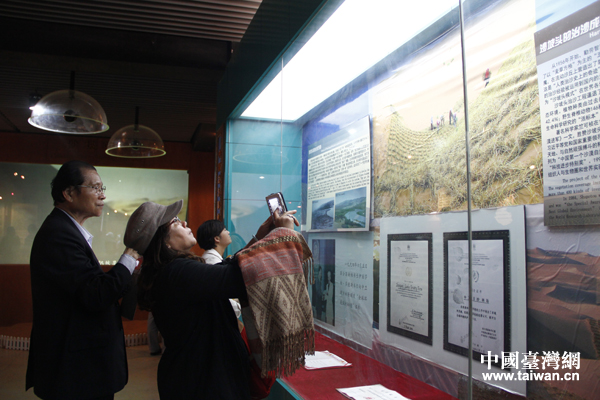 交流团参观了景区的沙漠博物馆,了解沙漠多样的动植物和矿产资源,以及世界闻名、宁夏首创的五带一体麦草方格治沙工程。(中国台湾网 普燕 摄)