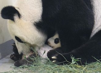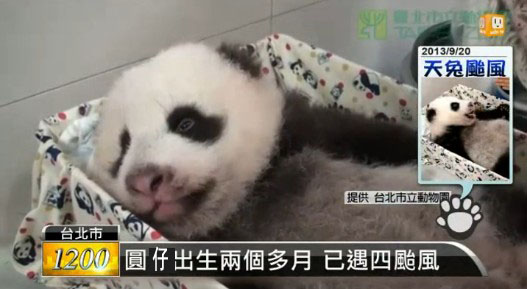 其实,此次超强台风“天兔”已是圆仔第四次经历的台风天气。7月13日“苏力”台风,圆仔出生7天,体重243克,身处保温箱内,由保育员全程陪伴;8月21日“潭美”台风,与妈妈同在室内展场,不过是在圆圆怀里度过的;8月31日“康妮”台风,圆仔就被妈妈叼着不停地换着舒服位置;9月20日,“天兔”台风,圆仔体重月4.8公斤,不只能听得见声音,而且再过几天还会长出牙齿。