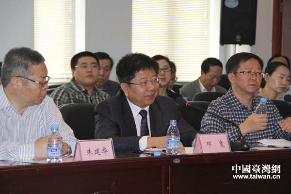 2013宁台医疗健康产业发展交流研讨会22日上午在银川举行。宁夏回族自治区党委副秘书长、台办主任邓宽参加座谈并致辞。(中国台湾网 普燕 摄)
