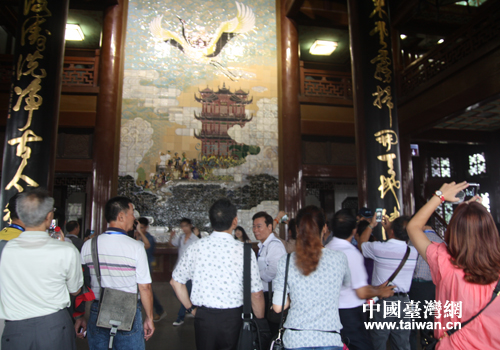 两岸记者走进黄鹤楼,参观黄鹤壁画。(中国台湾网 段雯婷 摄)。