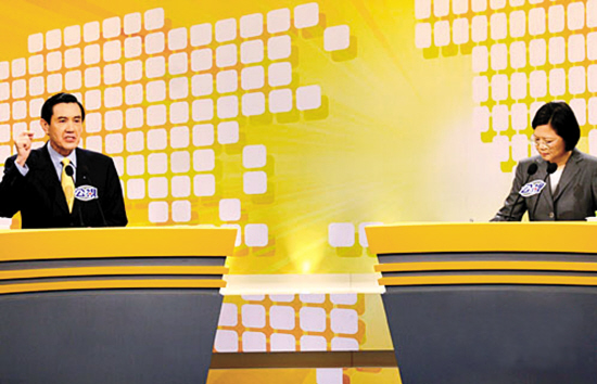 2010年4月25日,国民党主席马英九和时任民进党主席蔡英文就两岸经济合作框架协议(ECFA)进行了一场全台直播的电视辩论。(图片取自网络)