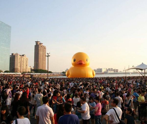 小黄鸭在高雄港展出,不到一个星期已经有40万人前往参观。(图片来自台媒)