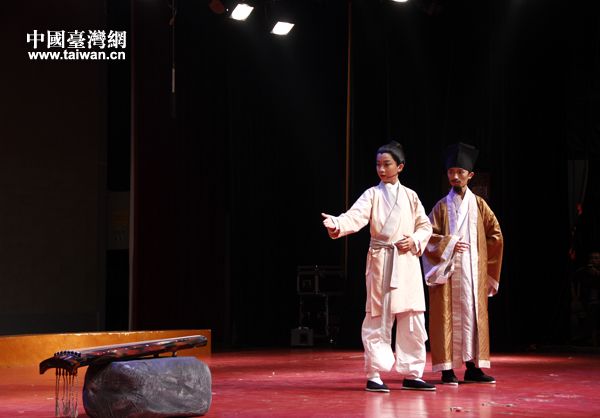 西城区中小学同学表演情景剧,展现了俞伯牙与钟子期因琴声结缘,以及伯牙绝琴的典故。(中国台湾网 普燕 摄)