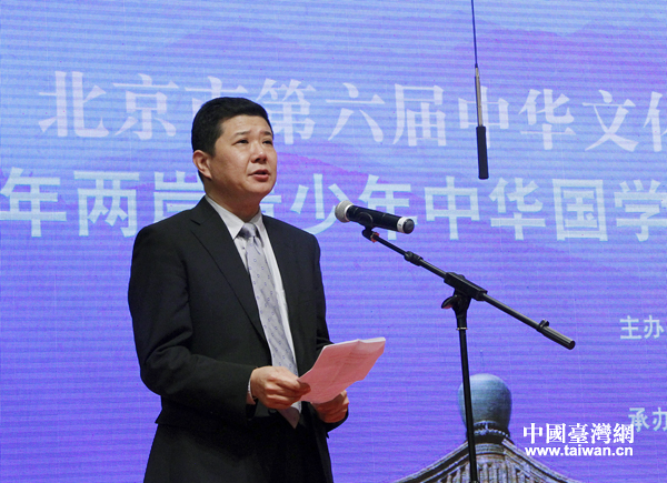 28日,北京市第六届中华文化快车——2013年两岸青少年中华国学文化课堂交流活动在北京四中举行。北京市西城区区长王少峰在活动仪式上致辞。(中国台湾网 普燕 摄)