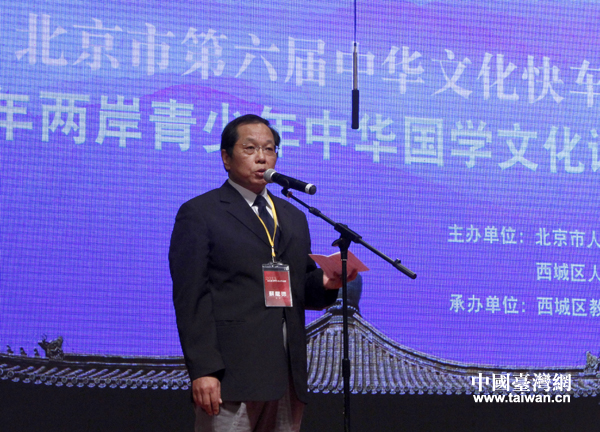 28日,北京市第六届中华文化快车——2013年两岸青少年中华国学文化课堂交流活动在北京四中举行。新竹衷新学校董事会董事苏龙德在活动中致辞。(中国台湾网 普燕 摄)