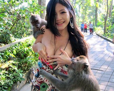 陈维芊因为旅游时遭猴子袭胸而暴红。(图片来自台媒)