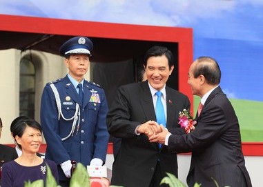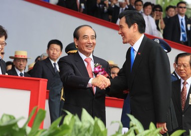 中国台湾网10月10日消息 据台湾媒体报道,“双十庆”典礼上午11时45分圆满结束,在大会司仪高呼恭送马英九时,马英九再度主动向担任大会主席的台湾“立法院长”王金平握手致意。