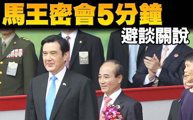 马英九办公室发言人李佳霏说,马王相处5分钟,马英九主动趋前握手,两人谈了天气和运动等话题。