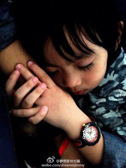 今午父子俩刚录完《爸爸去哪儿》,由于是全外景节目,Kimi尽管活力充沛,也累到贴着爸爸的手睡着了。林志颖趁机拍下宝贝儿子甜睡的模样,写下:“世上最幸福的事,就是看着可爱的kimi倚靠着我的手睡着了。”Kimi可爱的模样,成功掳获粉丝的芳心,纷纷大赞卡哇伊。另有不少粉丝吃惊Kimi又长又黑的睫毛,探询“睫毛太长了吧,这小子,可爱到底了”、“快说这孩子用啥牌子睫毛膏”。(中国台湾网 朱炼)