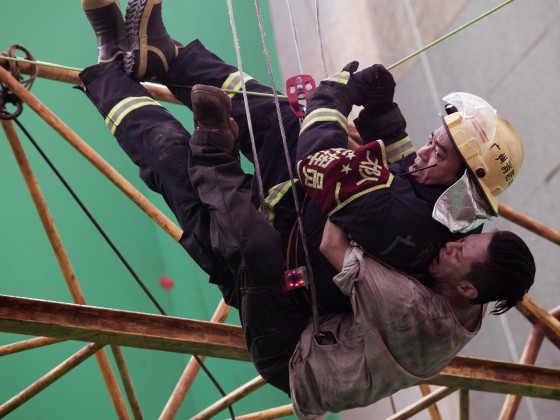 刘青云对《逃出生天》中一场吊车救援的戏印象深刻,觉得很危险。(台媒图)