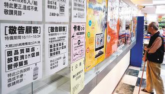 大统问题油事件如滚雪球,在台湾引起轩然大波,卖场张贴停止贩卖大统橄榄油公告。(来源:台湾《联合报》)