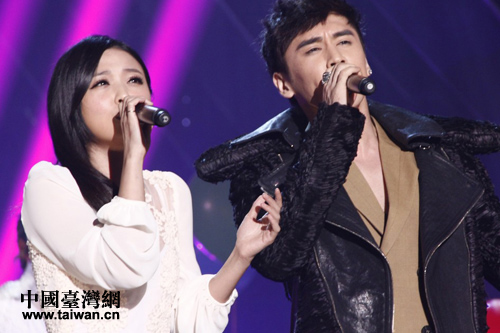 卓文萱和张伦硕深情对唱《有一点动心》(中国台湾网 杨旋 摄)