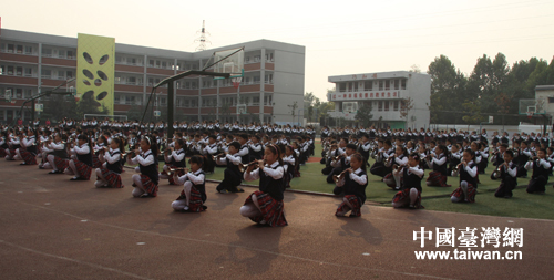 沁阳市实验小学学生表演千人唢呐演奏,欢迎台湾师生代表参访。(中国台湾网 扶海涛 摄)