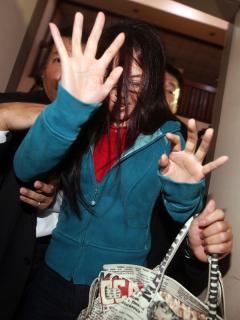 国民党荣誉主席连战长女连惠心(前)30日晚间赴台北地检署,说明“威力纤案”,并以新台币250万元交保离开。(台媒图)