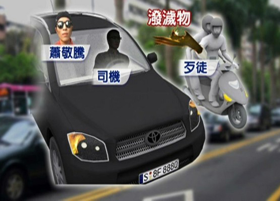 中国台湾网10月31日消息 据台湾媒体报道,萧敬腾险些遭泼秽物一案,台北市警方以车追人,锁定22岁男子萧毓仁涉案,并寻获作案摩托,警方今日凌晨将摩托车运回警局,案情已呼之欲出。摩托原来属于46岁的萧毓仁父亲所有,不过当天用车的是萧毓仁,萧父说,儿子案发当天曾打电话给他,坦承“萧敬腾就是被我泼的!”并抱怨“只是要吓人,不知道事情会闹那么大!”警方目前正在追查共犯。