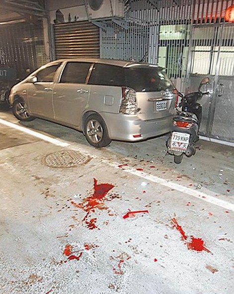李姓男学生坠落于公寓旁柏油路上,现场血迹斑斑、怵目惊心。(台媒图)