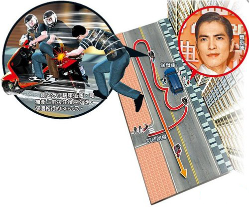台湾媒体制作的萧敬腾被泼粪现场模拟图。(图片取自网络)