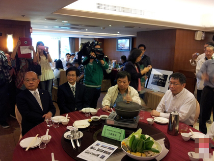 苏贞昌与柯文哲3日出席公开活动时餐叙同桌,但两人互动不多。(图片取自台媒)