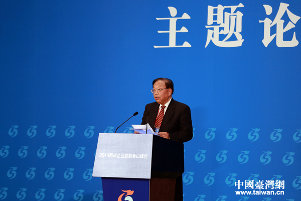 2013两岸企业家紫金山峰会主题论坛5日上午在南京紫金山庄举行,峰会成长型和中小企业合作推进小组召集人(大陆)蒋以任出席论坛并演讲。(中国台湾网 王伟 摄)
