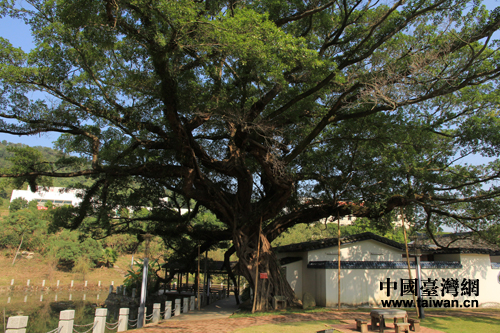 院中的千年古树“榕包樟”,榕树包裹樟树,被称为“东南亚第一奇树”。(中国台湾网 马迪 摄)