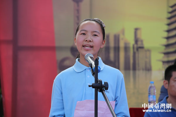 古竹顶新中学七年级二班的魏海花在发言中说:塑胶操场和塑胶篮球场对我们山区的孩子是遥远的梦想,感谢顶新公益基金让我们实现了梦想。我和我的同学们将永远铭记顶新人的这份情、这份厚爱(中国台湾网 芜同 摄)