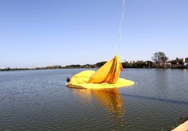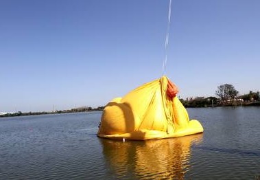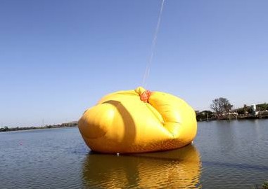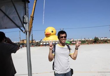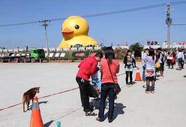中国台湾网11月8日消息 据台湾媒体报道,桃园黄色小鸭,今天中午12时在高雄市政府人员确认后小鸭开始充气,十几分钟完成。现场民众和小朋友目睹小鸭从后湖塘慢慢升起,帮忙喊“小鸭加油!”(中国台湾网 高旭)