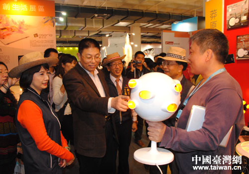 11月9日上午,北京市副市长戴均良(中)参观第八届文博会台湾文创精品馆。(北京市通讯员 郭宁 摄)