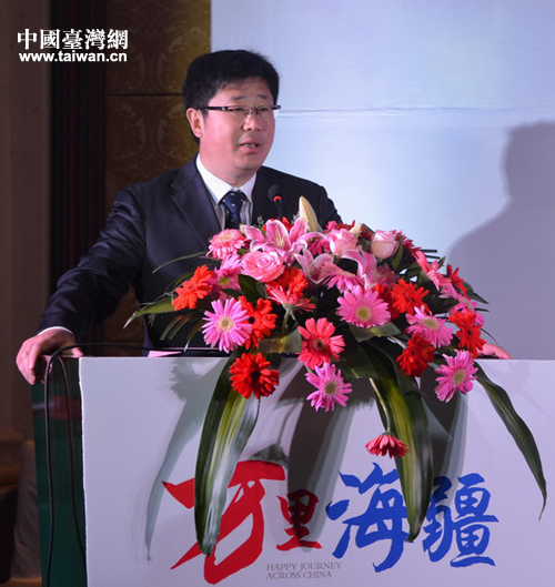 万里海疆知识有奖征答主办单位中华文化发展促进会秘书长郑剑致辞。(摄影 郑霁远)