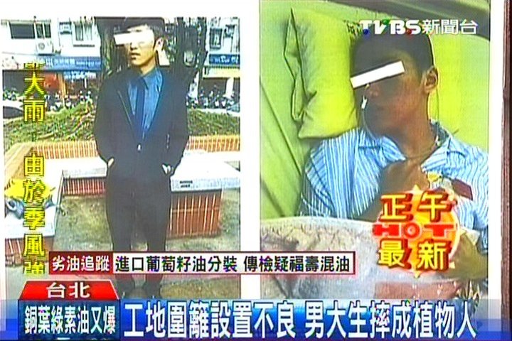 中国台湾网11月14日消息 据台湾TVBS报道,台湾文化大学男生,今年6月骑摩托车行经台北市自强隧道口,发生车祸,本来再有6天就毕业的他,变成植物人,家属相当不舍。质疑车祸肇事原因,是公园处承包商修剪树枝的工程,没有依规定在工地围篱前,设置警示灯,工地围篱的施工标示,也没有依规定设置,短少了20米,令路人根本反应不及。原本公园处承包商还不愿以工程险理赔,不过交通事故鉴定报告出炉,承包商的确有疏失,必须连带负责,理赔金额最高500万(新台币,下同)。