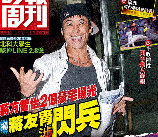 中国台湾网11月15日消息 据台湾《中国时报》报道,蒋介石曾孙蒋友青涉嫌恐吓“台北美国学校”,虽躲过法院羁押,检方却调查得知,蒋友青自高中毕业后就未继续就学,理应入伍服役的他,却又因为家长庇护超过5年未入伍,恐怕还会因此吃上官司。