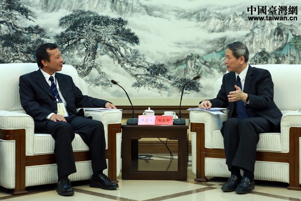 11月14日,张志军在北京会见了台南基层代表参访团一行。(中国台湾网 于斯文 摄)